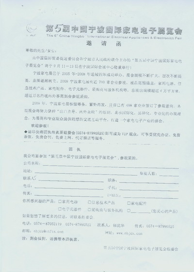 第5屆中國寧波國際家電電子展覽會(huì )邀請函