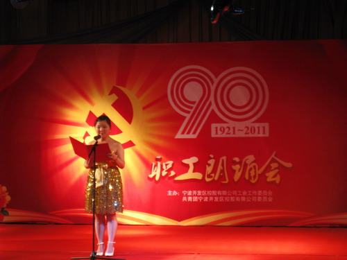 為慶祝中國共產(chǎn)黨建黨九十周年,謳歌黨的光輝歷程,6月24日,由開(kāi)發(fā)區控股公司工委、團委主辦的“迎七一,慶建黨90周年”職工朗誦會(huì )在北侖區青少年宮隆重舉行。公司領(lǐng)導及各企業(yè)干部職工約160人出席并觀(guān)看朗誦會(huì )。