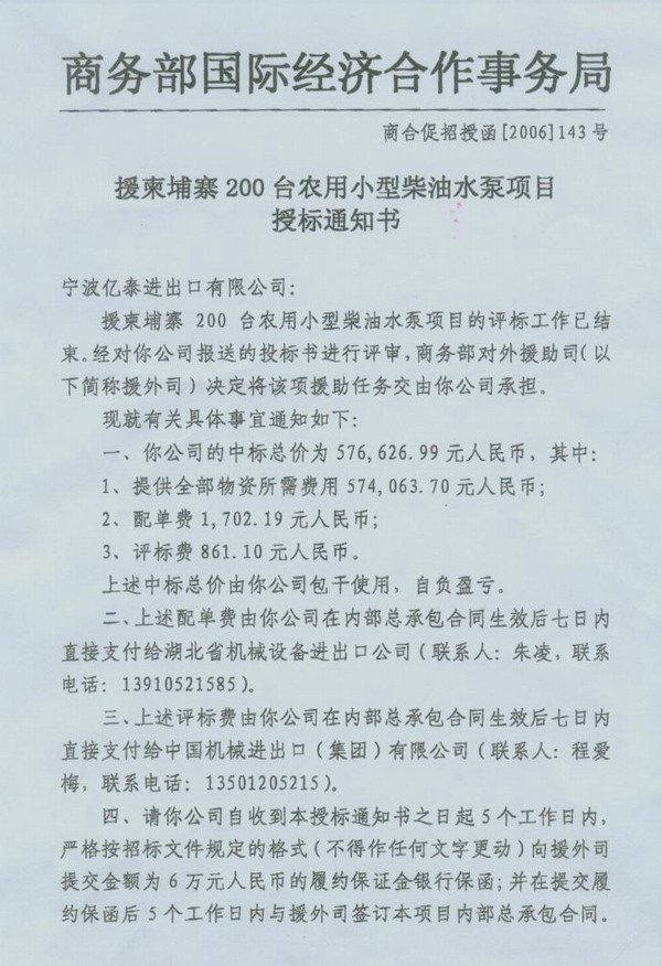 首個(gè)援外合作項目中標