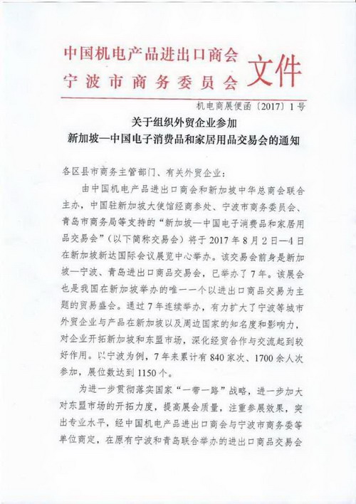 2017新加坡-中國電子消費品和家居用品博覽會(huì )