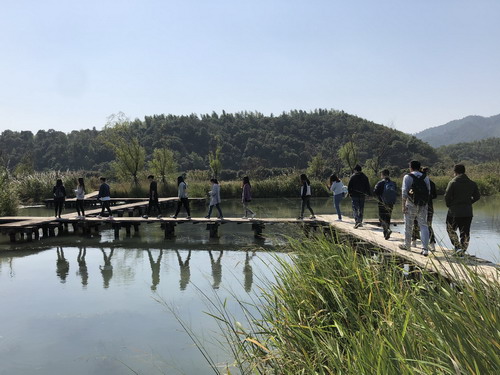 隨后,大家游覽了整個(gè)公園,下水濕地公園以“山水綠廊、古韻荷風(fēng)”為設計理念,有綠野仙蹤、金杉銀蘆、九曲橋、白鷺洲等濕地景觀(guān)。大家興致勃勃在領(lǐng)略大自然之美的同時(shí),也深刻認識到了保護環(huán)境與人類(lèi)的生存息息相關(guān)。