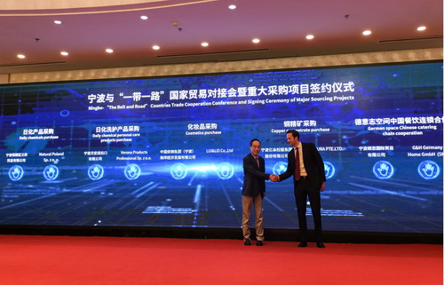為擴大進(jìn)博會(huì )對寧波的溢出效應,11月7日下午,寧波與“一帶一路”國家貿易對接會(huì )暨重大采購項目簽約儀式在上海舉行,億泰公司受邀參加此次簽約儀式。在寧波市、北侖區領(lǐng)導的見(jiàn)證下,陳偉明總經(jīng)理代表億泰公司與新加坡托克集團TRAFIGURA PTE.LTD.(2018年世界500強企業(yè)排名第32位)代表簽訂了銅精礦進(jìn)口采購合同,采購金額達4500萬(wàn)美元。